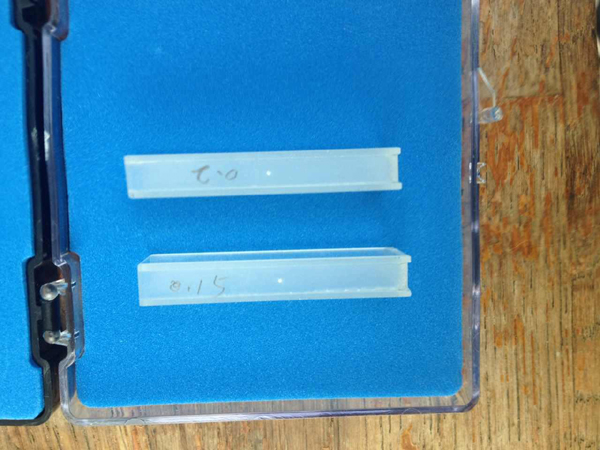 在兩邊磨砂面上打孔,主要用作穿過一根光纖,然后光從透光面穿過(穿過光纖)來測試光纖。