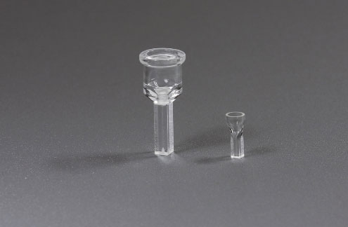 鞘流器是用于五分類血球儀光學系統(tǒng)中細胞光學檢測的核心器件,用于形成鞘流。石英鞘流管采用一體化成型工藝,超精光學研磨加工光學平面,最小內(nèi)孔0.2×0.2mm。
